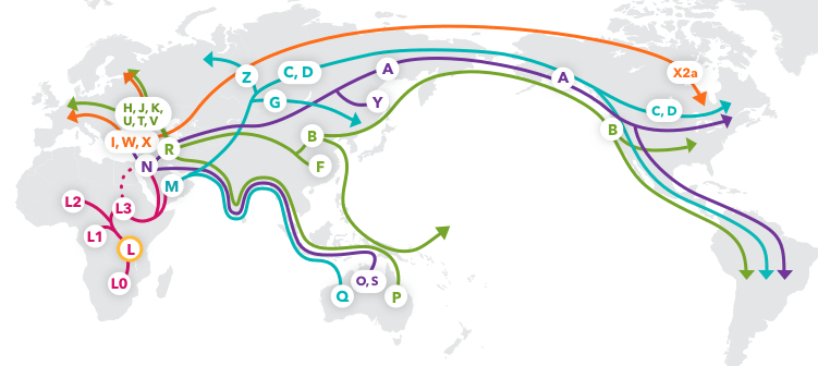 H1q represents my maternal Haplogroup. According to 23 & Me, H1q haplogroup traces back to a woman who lived nearly 18,000 ago. The H haplogroup is nearly 240 generations ago from what’s known today as the Middle East, it’s relatively uncommon among 23 & Me customers as it evolved into H1q 6,000 years ago! Haplogroup L is the oldest, tracing back to a maternal woman who lived in eastern Africa between 150,000 and 200,000 years ago. Paternal Haplogroup groups are identified through male children. Therefore, a male sibling can determine the paternal Haplogroup group of a female sibling if they share the same paternal side. Each subsequent sibling inherits a random fifty percent from shared parents.